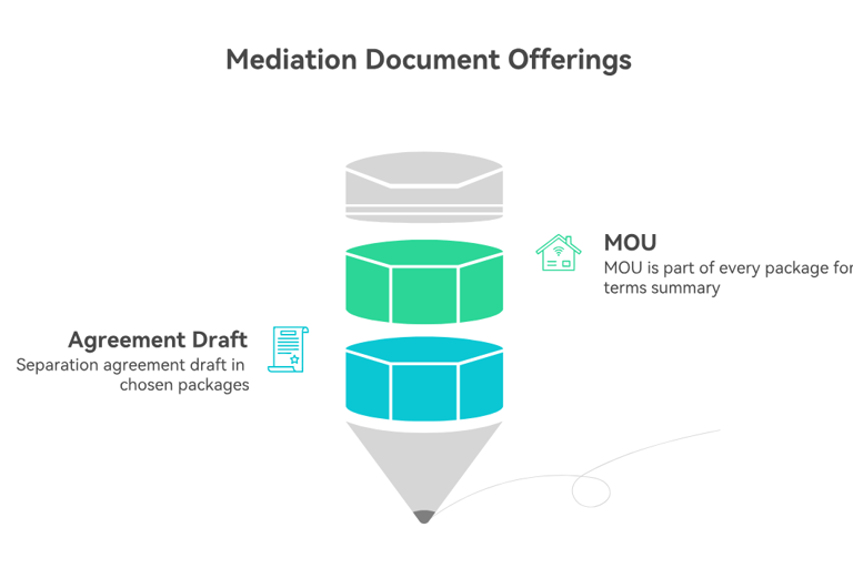In select Clearpoint packages, a mediated separation agreement draft may be prepared to reflect the mediated terms in a more formal structure. This draft is prepared for independent legal review and finalization and does not replace legal advice.